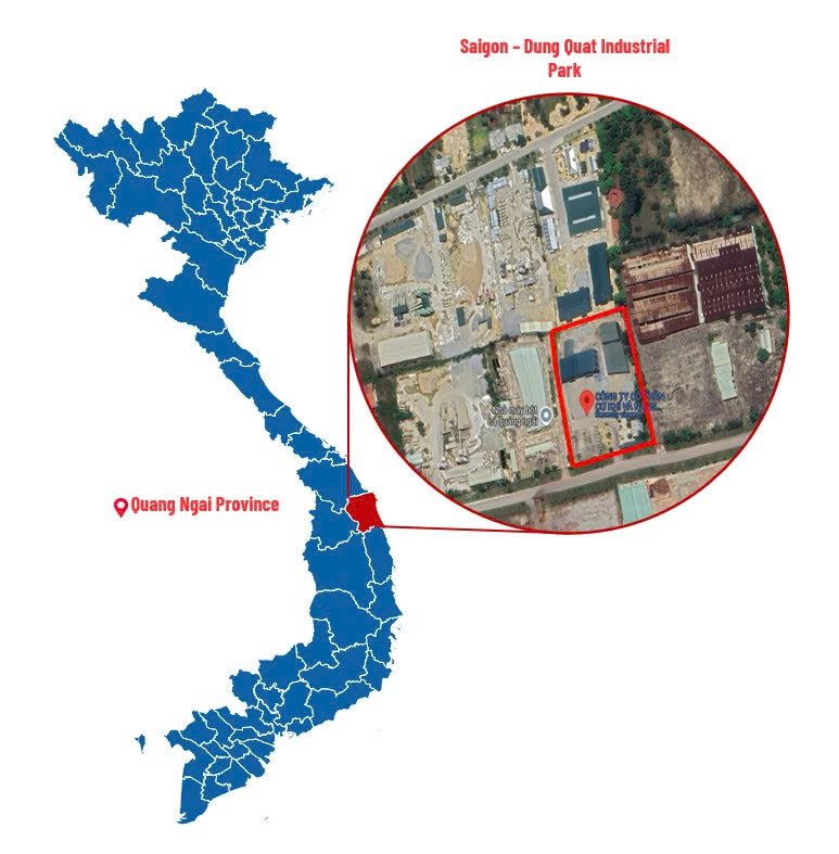 - Địa chỉ: Phân khu Công nghiệp Sài Gòn - Dung Quất, Khu Kinh tế Dung Quất, Xã Bình Sơn, Tỉnh Quảng Ngãi, Việt Nam